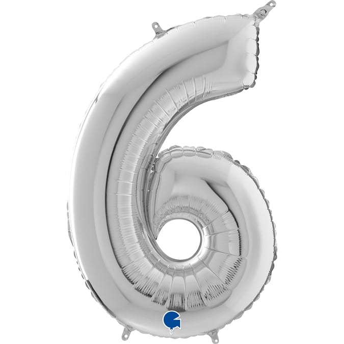 Palloncini > Mylar > Numeri > Grandi cm. 102 PALLONE MYLAR MEGA N. 6 – 9 ARGENTO 102CM € 3,90 iva inclusa