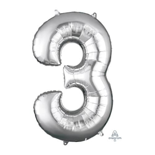 Palloncini > Mylar > Numeri > Grandi cm. 102 PALLONE MYLAR MEGA N. 3 GLITTER SILVER 102CM € 4,27 iva inclusa