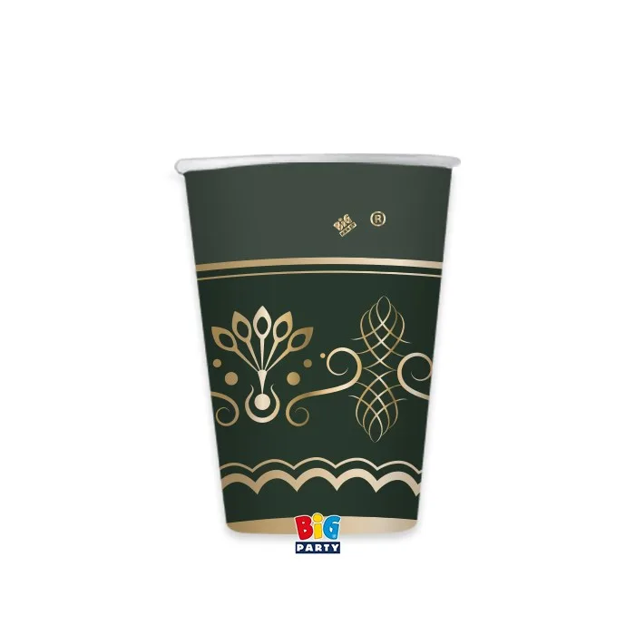 6 BICCHIERI CARTA 200CC ROYAL GREEN BORDO METAL ORO