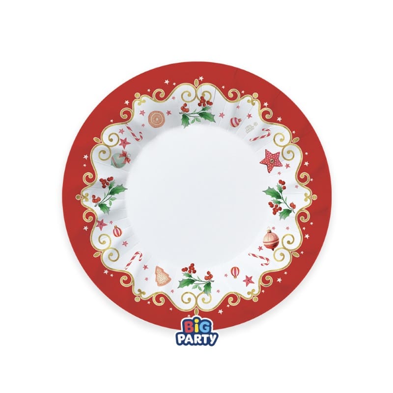 6 PIATTI CARTA 24CM FONDI CHRISTMAS JINGLE PLASTIC FREE