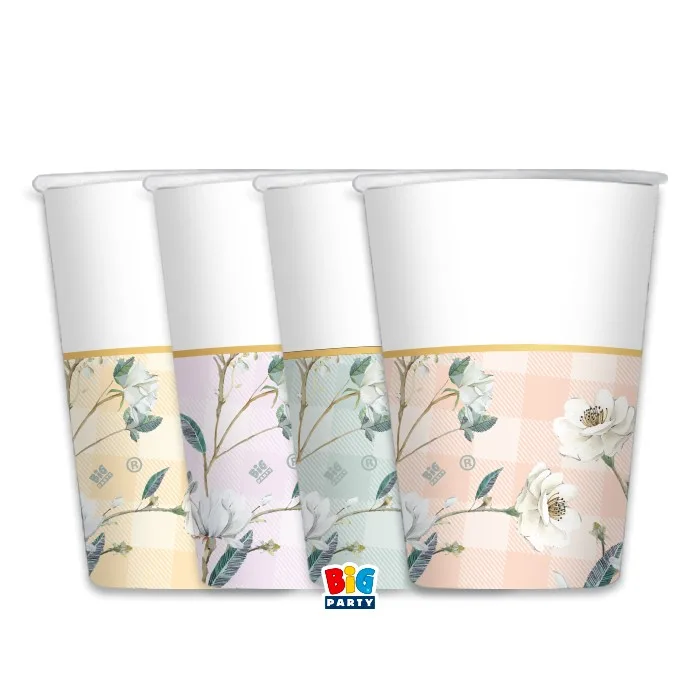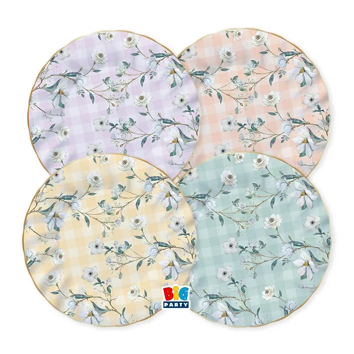 8 PIATTI CARTA Ø 20CM FLORAL VICHY BORDO ORO METAL