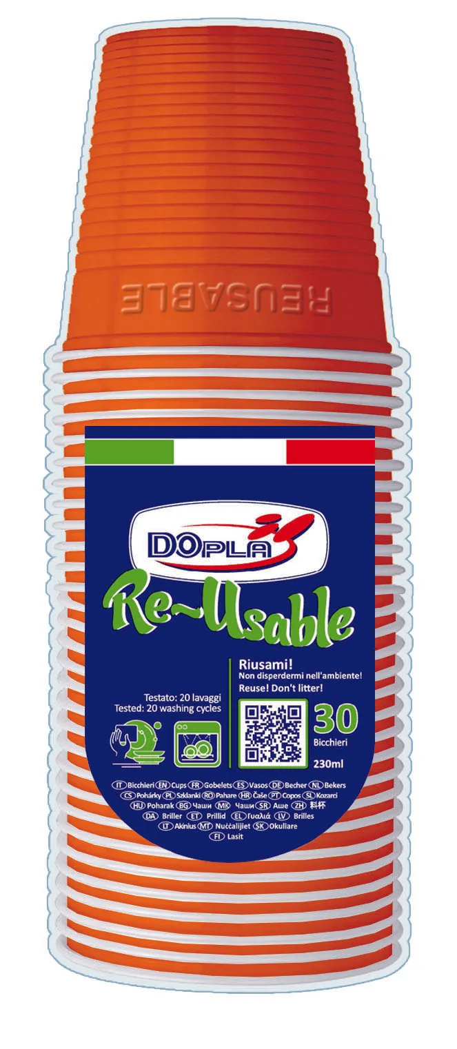 BICCHIERI PLASTICA RIUTILIZZABILE BICOLORE ARANCIONE 30PZ