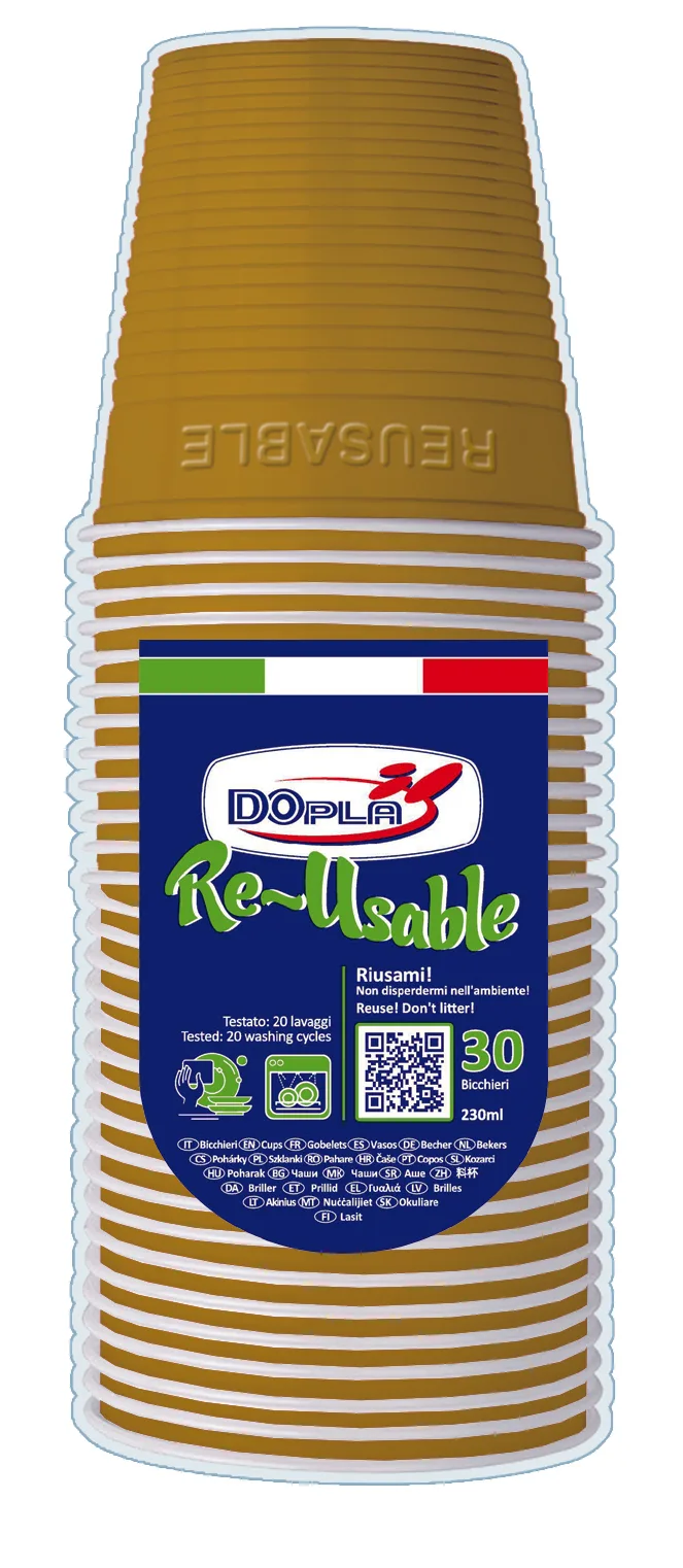 BICCHIERI PLASTICA RIUTILIZZABILE BICOLORE ORO 30PZ