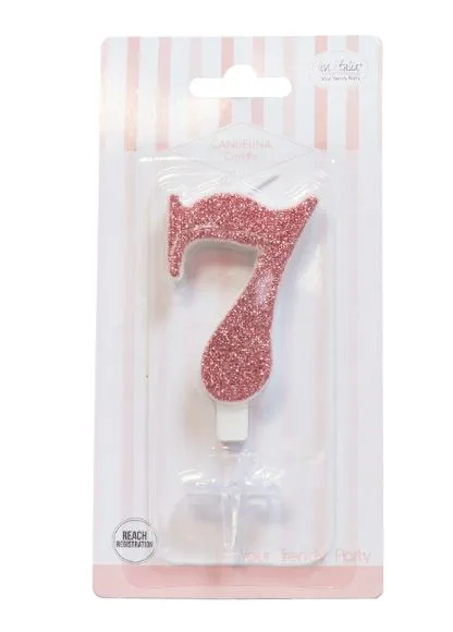 Candela sagomata a forma di numero 7 SETTE con supporto in plastica trasparente