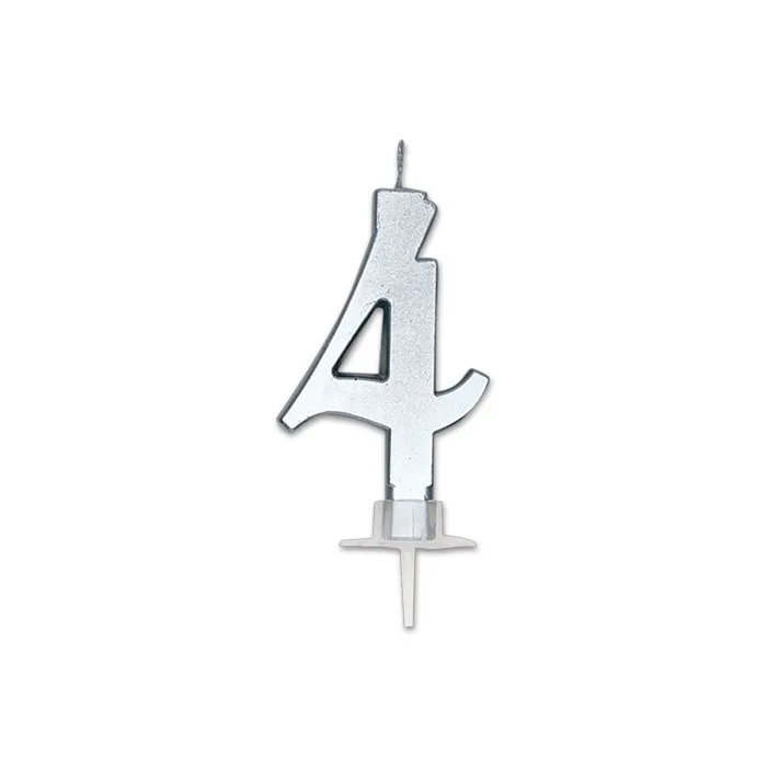 CANDELA NUMERO 4 CERA ITALIC METAL ARGENTO 7CM