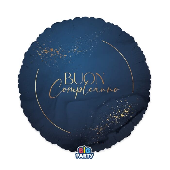 PALLONE MYLAR 18″ 45CM BLU BUON COMPLEANNO BIANCO-ORO