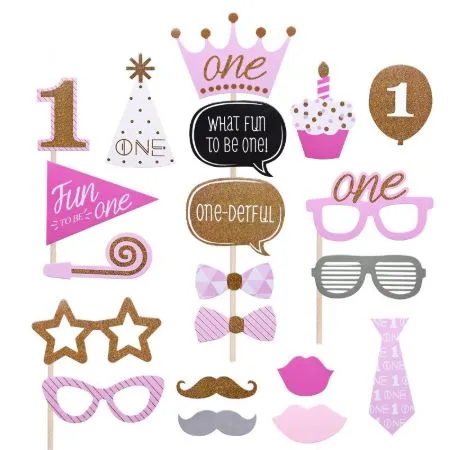 PHOTO PROPS 20PZ 1° COMPLEANNO ROSA BIMBA
