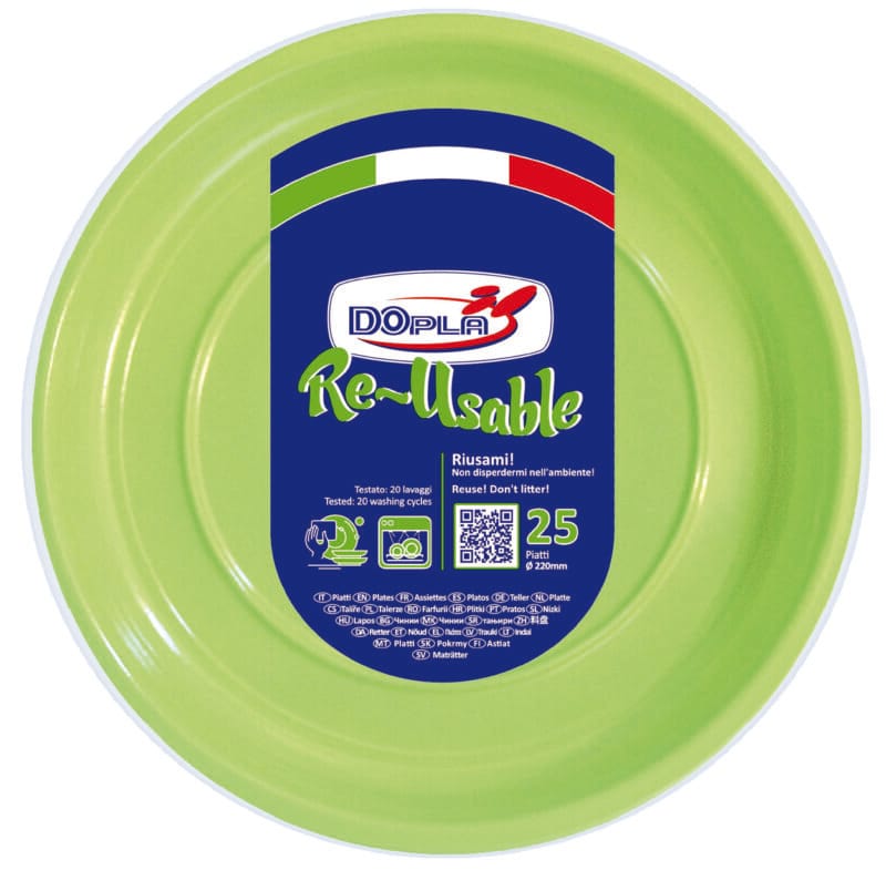 PIATTO PLASTICA RIUTILIZZABILE Ø 22CM NERO 25PZ