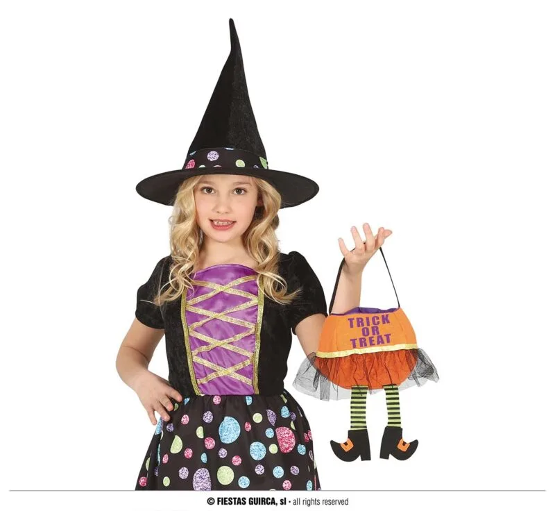 SECCHIELLO PORTA CARAMELLE FELTRO ARANCIONE “TRICK OR TREAT” 20 CM