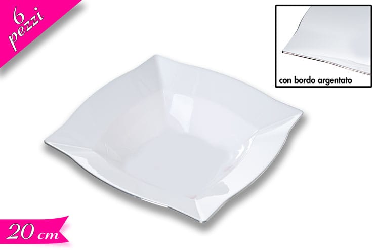 SET 6 PIATTI FONDI 20X20CM CON BORDO ARGENTO