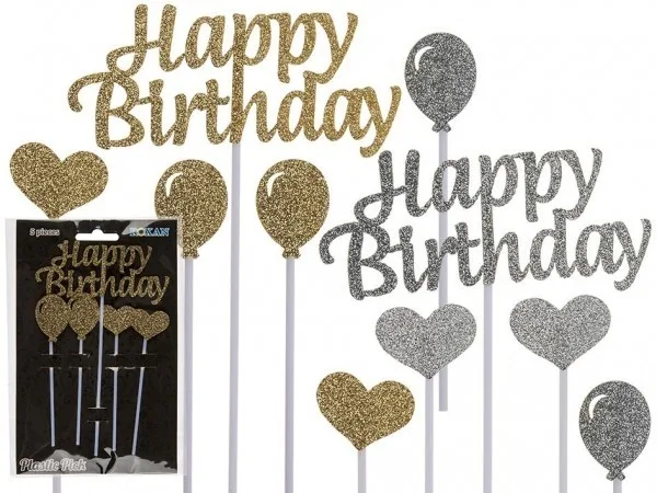 Cake Topper in carta 20 x 17 cm Scritta Italic Buon Compleanno Oro Metal