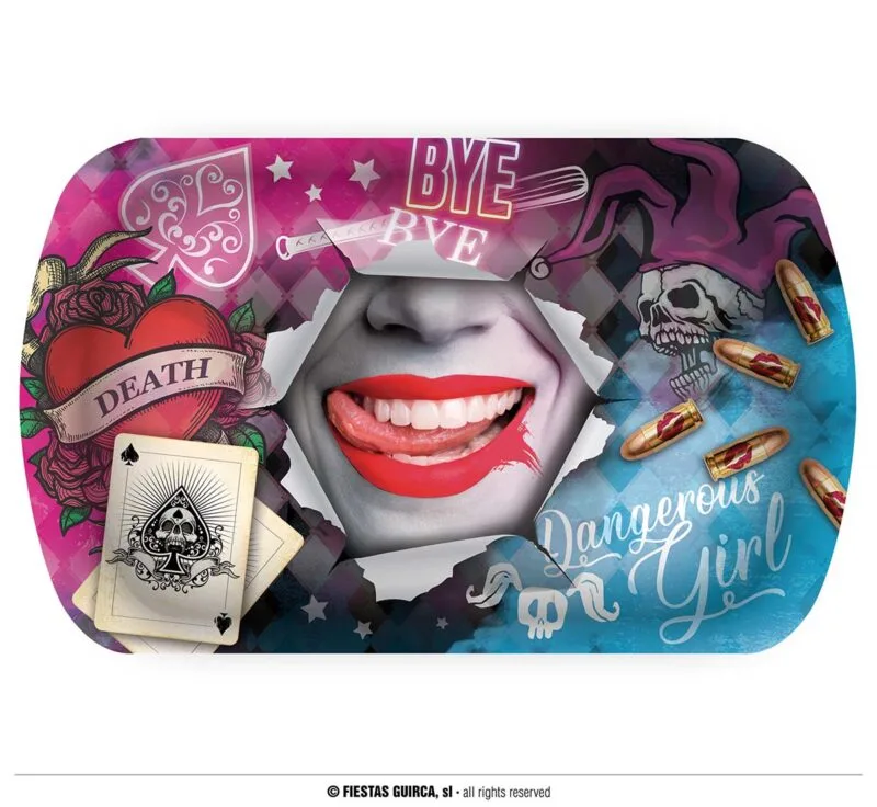 VASSOIO IN PLASTICA DURA RAGAZZA PERICOLOSA 29x15x3,5 CM